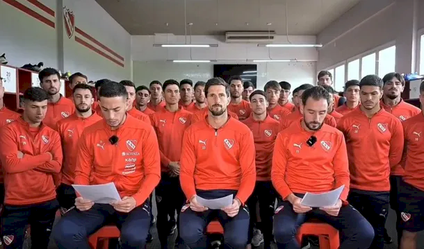 Sin la presencia del DT Julio Vaccari ni de dirigentes, los jugadores del Rojo decidieron expresarse por su cuenta. En el video, grabado en el vestuario de Villa Domínico, los referentes aparecieron acompañados por sus compañeros, con excepción de los convocados a selecciones (Felipe Loyola, Luciano Cabral, Gabriel Ávalos y Lautaro Millán).