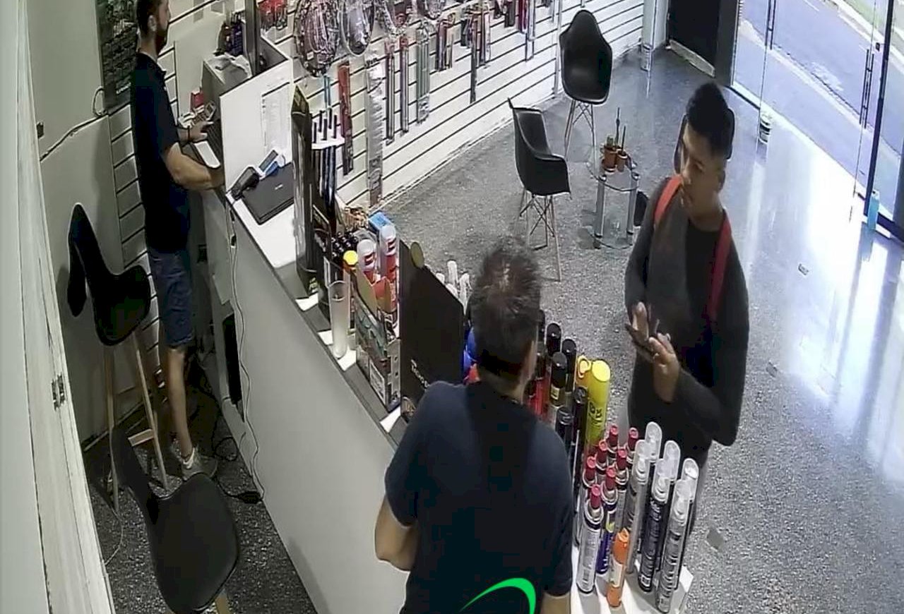 Dos sujetos llegaron al lugar en moto. Uno se quedó arriba del rodado mientras que el otro ingresó al local para averiguar pecios y luego hacer una compra por un valor aproximado de $71.000.