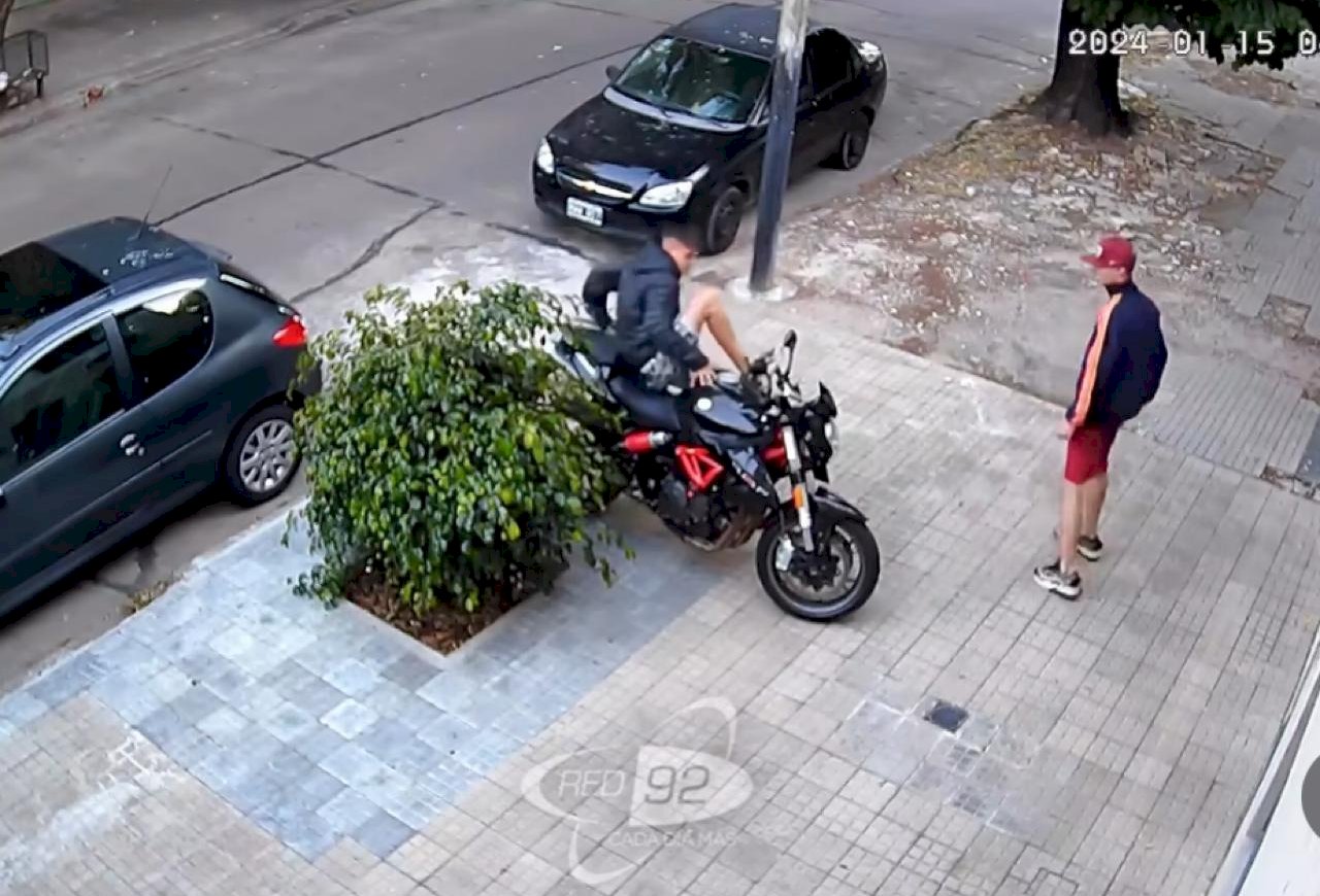 Los sujetos circulaban por 35 entre 10 y 11 cuando vieron la moto estacionada en la vereda y no dudaron en llevársela.