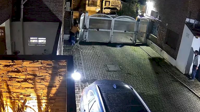 Allí comenzaron a escucharse fuertes gritos, de acuerdo con los registros audiovisuales de las cámaras. Ocurrió cuando una mujer salió corriendo desde el interior de la vivienda hacia el portón, con un menor en brazos y su perro.