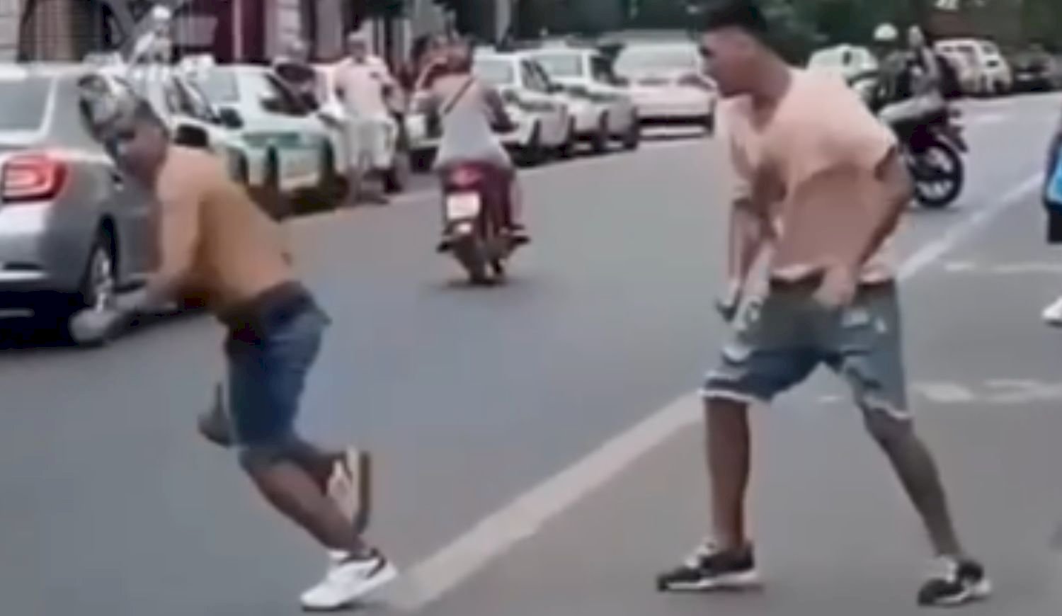 Un insólito hecho se vivió esta tarde en pleno centro platense, donde dos sujetos comenzaron a pelearse a puño limpio ante la mirada de todo el público.