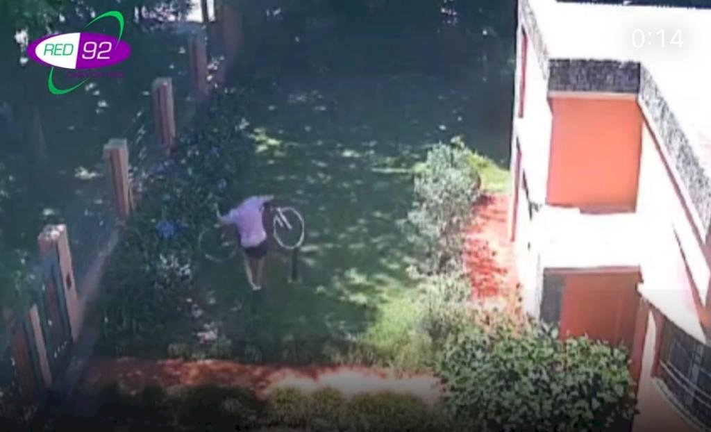 Un sujeto, sin importarle o notar que había cámaras, trepó la reja e ingresó al patio delante donde, cerca de ahí, había una bicicleta.