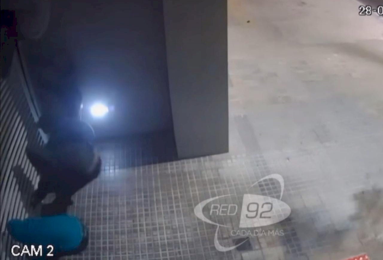 En las imágenes se puede observar el momento en que los chicos se treparon al portón y forcejearon para abrirlo. A pesar de todos los esfuerzos no lograron su cometido y escaparon corriendo y tropezando al momento que escucharon el ruido de la alarma.