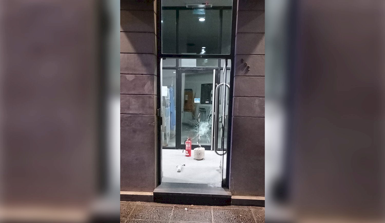 Al llegar, corroboraron la denuncia y vieron al hombre en pleno ataque, por lo que procedieron a reducirlo. Una vez que lograron calmarlo, lo esposaron y encontraron un matafuegos con el que estaba dañando el vidrio de la puerta de entrada a los cajeros.